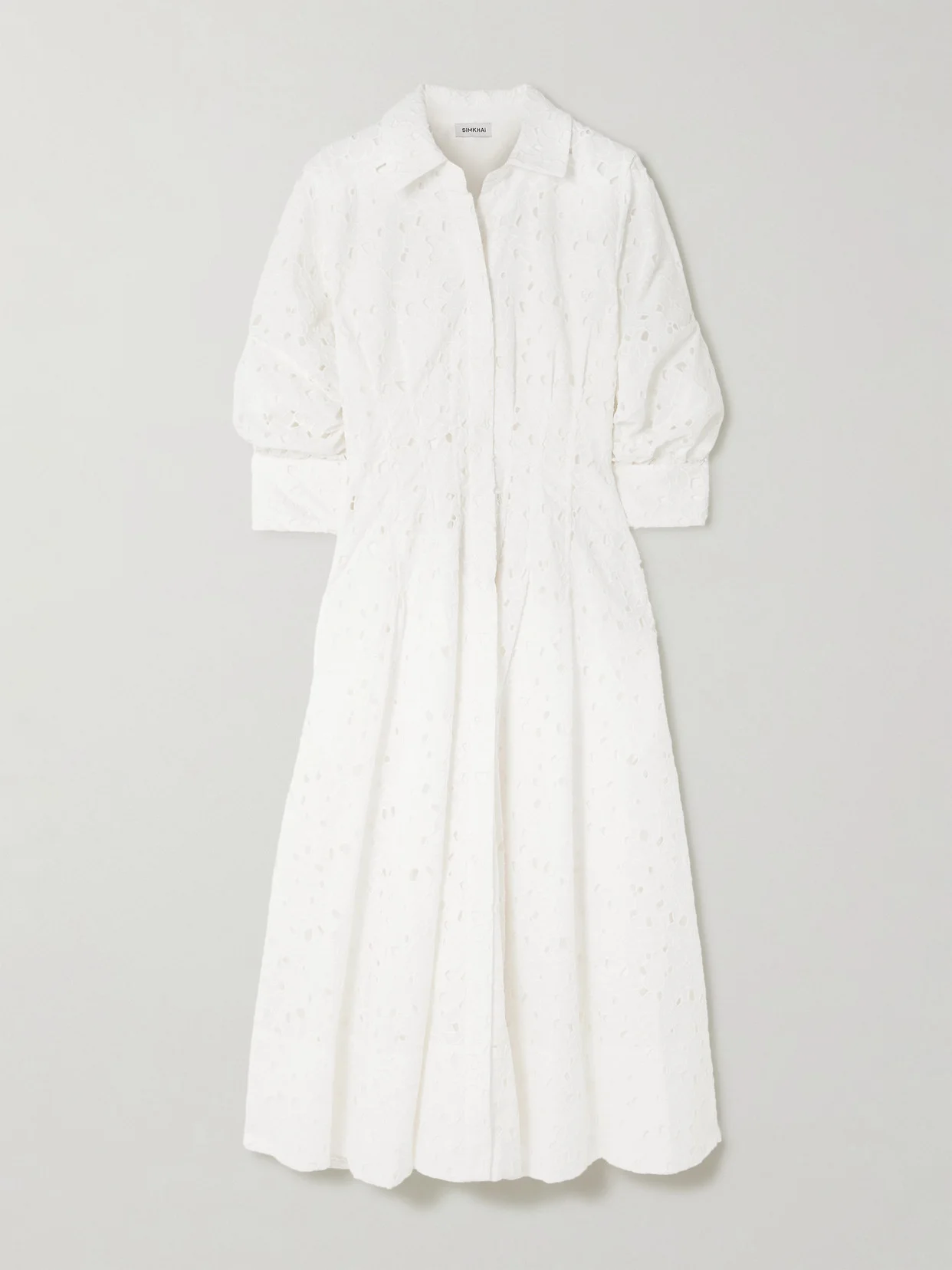 Jazz Pleated Broderie Anglaise Cotton Midi Shirt Dress