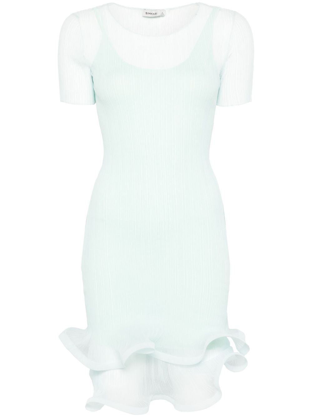 Jett mini dress Highlights - Aqua blue - Plisse effect - Ruffle hem - Internal slip dress Imported Composition Lining: Rayon 73%, Nylon 17%, Polyester 10% Outer: Polyester 100% SIZE & FIT Model measurements Height 5 ft 9 in(1.76 m) Bust/Chest 31.1 in(79 cm) Hips 36.61 in(93 cm) Waist 24.8 in(63 cm) FittingInformation Designed for a slim fit that sits just away from the body offering a close yet comfortable fit Made from a midweight non-stretch fabric, this piece offers minimal elasticity when worn