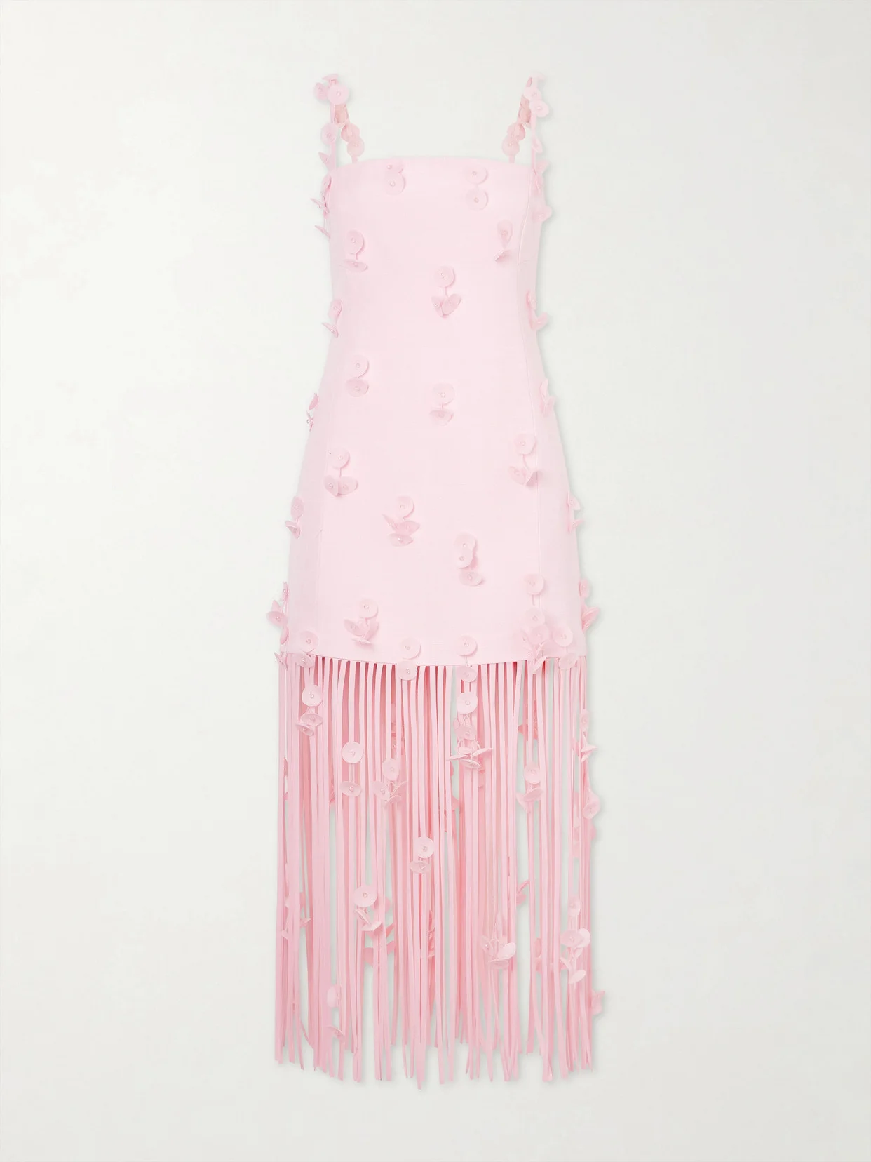 Juliana Embellished Fringed Linen-blend Midi Dress