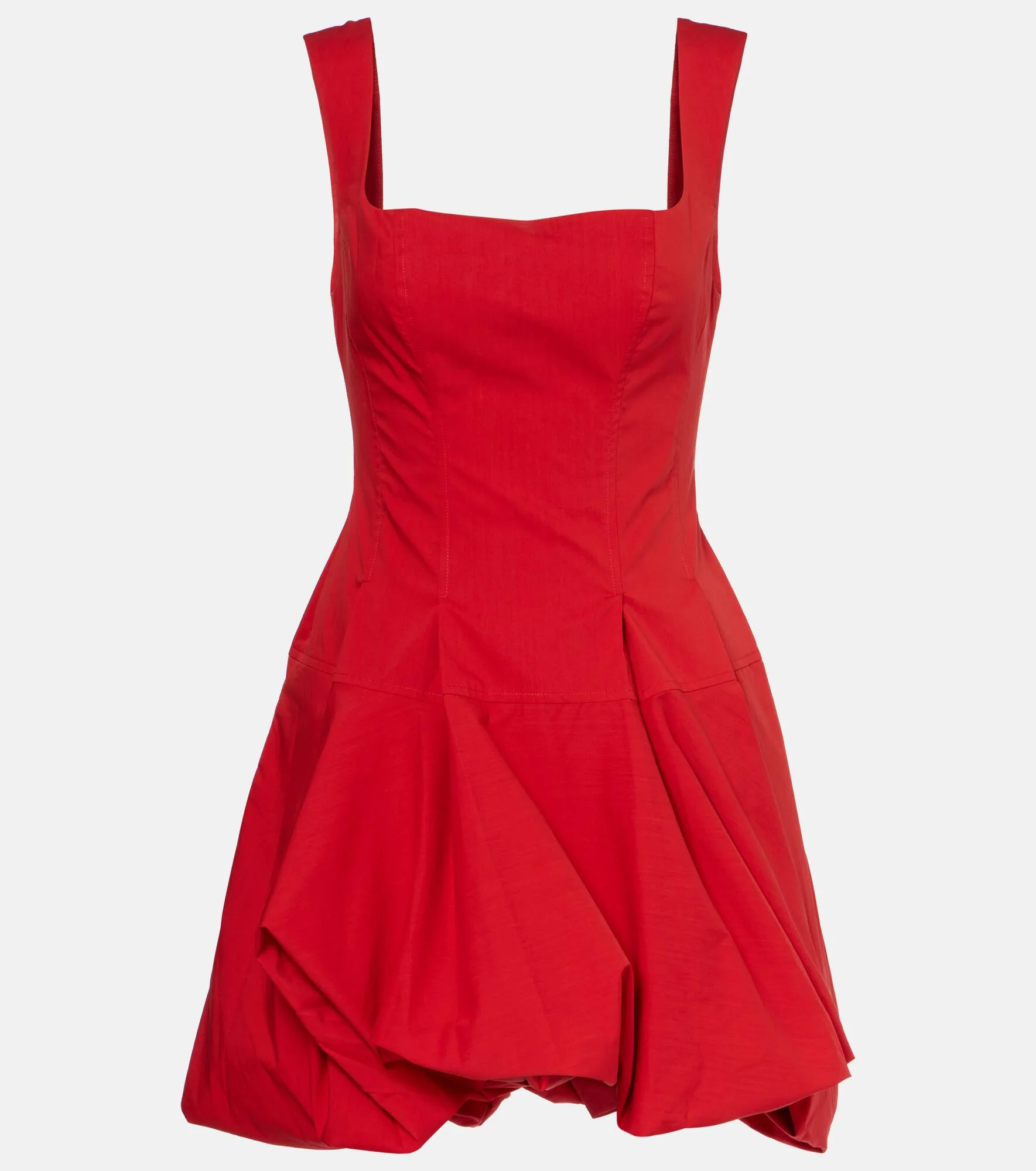 A vibrant piece for your edit, the Juni minidress from Simkhai is made from crisp cotton-blend poplin. The style boasts a chic square neckline and a bubble skirt for volume. Product Details - Material: 63% cotton, 37% polyester - Care instructions: machine wash cold - Made in China - Designer color name: Crimson - Item color: red - Lining: 100% cotton - Lining II: 100% polyester - Closure: zipped back - Pockets: side slit pockets - Fully lined - Item number: P01068650 Size & Fit - True to size - Fitted bodice, loose skirt - Non-stretchy fabric - The model seen in the picture is 178cm-5'10" and wearing a size US 4