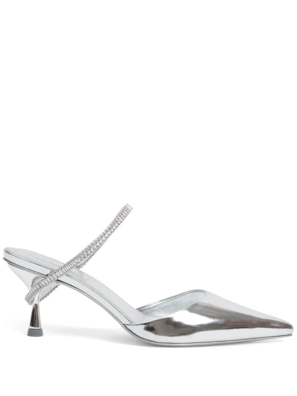 Kaian 60mm crystal-embellished mules Highlights - Silver-tone - Leather - Patent finish - Metallic sheen - Crystal embellishment - Pointed toe - Slip-on style - Branded leather insole - 60mm sculpted heel - Leather sole Imported Composition Outer: Leather 100% Sole: Leather 100% Lining: Nappa Leather 100%