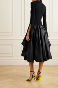 EDITORS'NOTES SIMKHAI delivers a stunning play on proportions with this 'Kenlie' dress. It's rib-knitted with a generous touch of stretch for a close fit through the bodice and puffs out to a voluminous taffeta skirt enhanced by a bubble hem. Make the most of the split sleeves by using them to frame a sculptural bangle. SIZE & FIT - Fits true to size, take your normal size - Designed to be fitted at the bust and waist, loose at the hip - Lightweight knit with non-stretchy fabric panels - Model is 175cm/ 5'9" and is wearing a size Small DETAILS & CARE - Black stretch-knit and taffeta - Slips on - Fabric1: 83% rayon, 17% elastane; fabric2: 70% polyester, 30% nylon; lining: 100% nylon - Dry clean