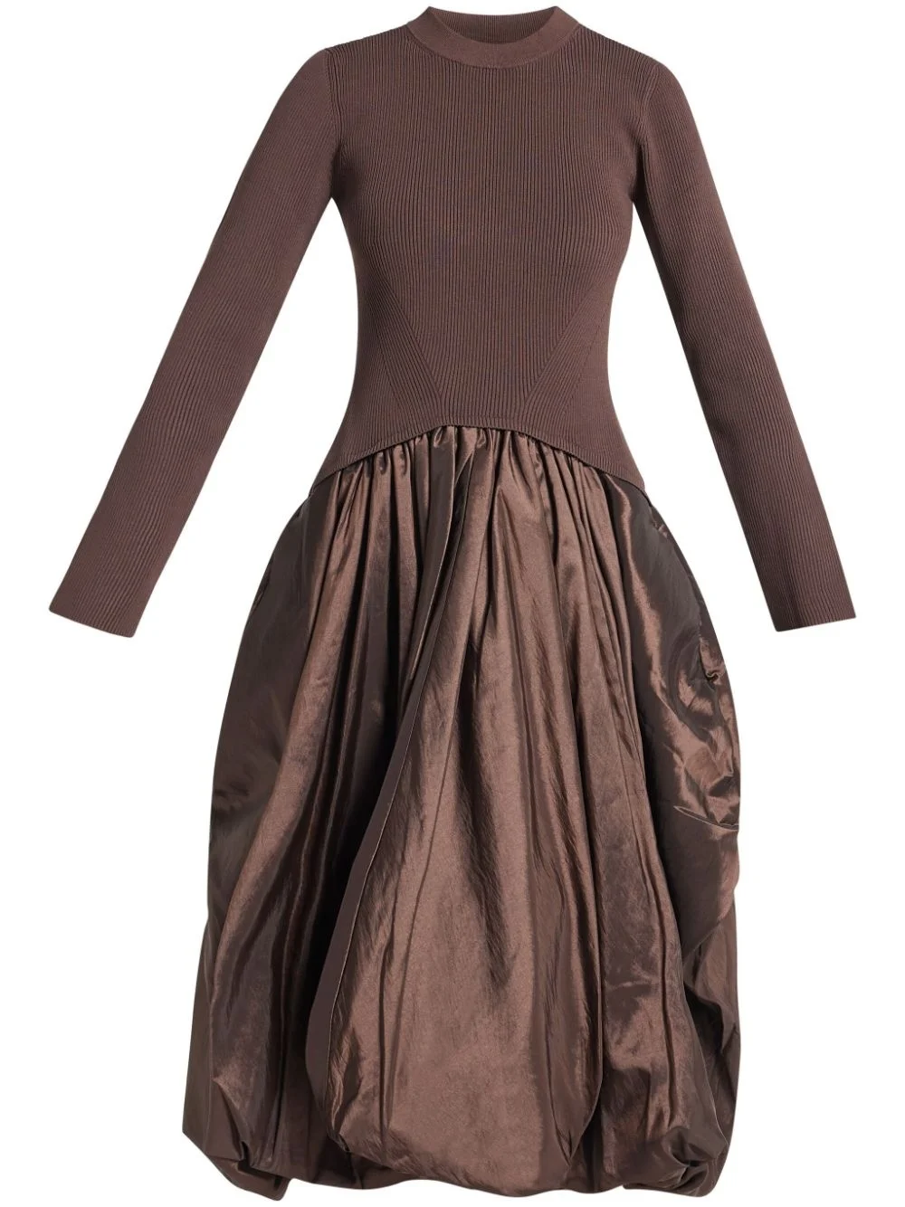 Kenlie dress Highlights - Chocolate brown - Ribbed knit - Panel detailing - Mock neck - Long sleeves - Split cuffs - Gathered detailing - Two side inset pockets - Flared skirt - Puffball hem - Full lining - Midi length Imported Composition Lining: Polyester 100% Outer: Rayon 83%, Elastane 17% SIZE & FIT FittingInformation Designed for a close fit at the chest and waist with a loose fit at the hip Made from a midweight stretch fabric, this piece offers elasticity and flexibility when worn Washing instructions Read Manufacturer Guidelines