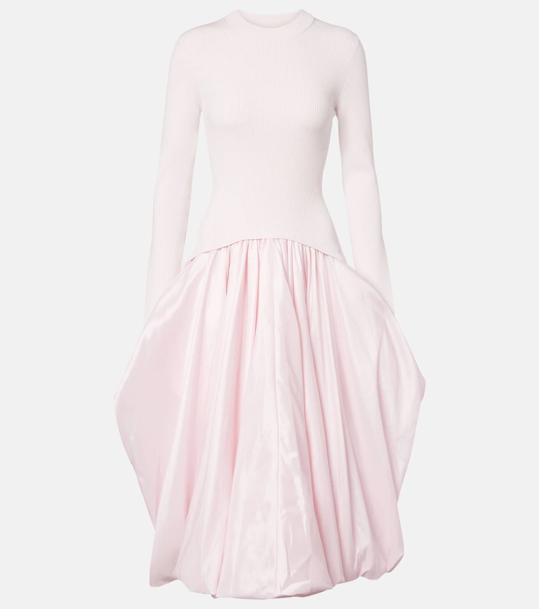Inspired by sculpture and architecture, Simkhai's designs combine innovative construction with hand-detailing. The Kenlie midi dress is structured with a ribbed-knit bodice and a draped skirt that adds volume to the look. Product Details - Material: 83% viscose, 17% elastane - Care instructions: hand wash cold - Made in China - Designer color name: Pink - Item color: pink - Material II: 60% polyester, 40% nylon - Lining: 100% nylon - Collar: crewneck - Pockets: side slit pockets - Item number: P01115010 Size & Fit - True to size - Fitted bodice, loose skirt - Partly stretchy fabric - The model seen in the picture is 178cm-5'10" and wearing a size XS