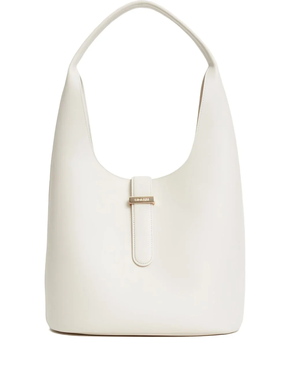 Khai leather clasp shoulder bag Highlights - Cream - Leather construction - Clasp fastening - Top handle - Curved silhouette Imported Composition Outer: Calf Leather 100% SIZE & FIT Measurement DEPTH 10.62 in(27 cm) HEIGHT 5.9 in(15 cm) WIDTH 15.35 in(39 cm)