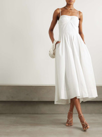EDITORS'NOTES The shape of Simkhai's 'Kittiya' dress is so pretty. It's made from cotton-blend poplin, which is darted and pleated to sculpt the bustline while creating light, airy movement through the skirt. SIZE & FIT Model measurements: - Fits true to size, take your normal size - Designed to be fitted at the bust and waist, loose at the hip - Mid-weight, non-stretchy fabric - Model is 180cm/ 5'11" and is wearing a US 2 - Bust: 80cm/ 31.5" - Waist: 65cm/ 25.6" - Hip: 79cm/ 31.1" DETAILS & CARE - White cotton-blend poplin - Concealed zip fastening along side - 63% cotton, 37% polyester - Dry clean