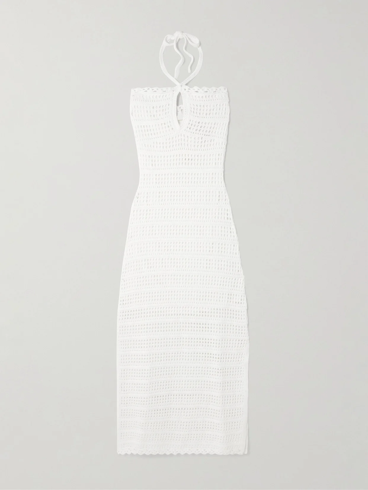SIMKHAI's dress is totally in keeping with this season's bohemian mood. Crocheted from cotton-blend, it has a halterneck with slim ties and a delicate keyhole cutout and is partially lined for coverage. Style yours with kitten heel sandals and a raffia bag.