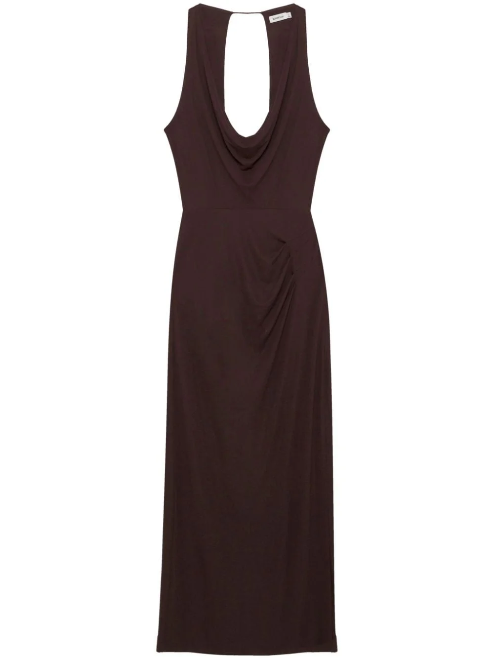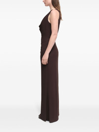 Kosme gown Highlights - Coffee brown - Stretch-design - Cowl neck - Concealed rear zip fastening - Sleeveless - Open back - Straight hem - Floor-length Made in United States Composition Lining: Rayon 94%, Spandex/Elastane 6% Outer: Rayon 96%, Elastane 4%