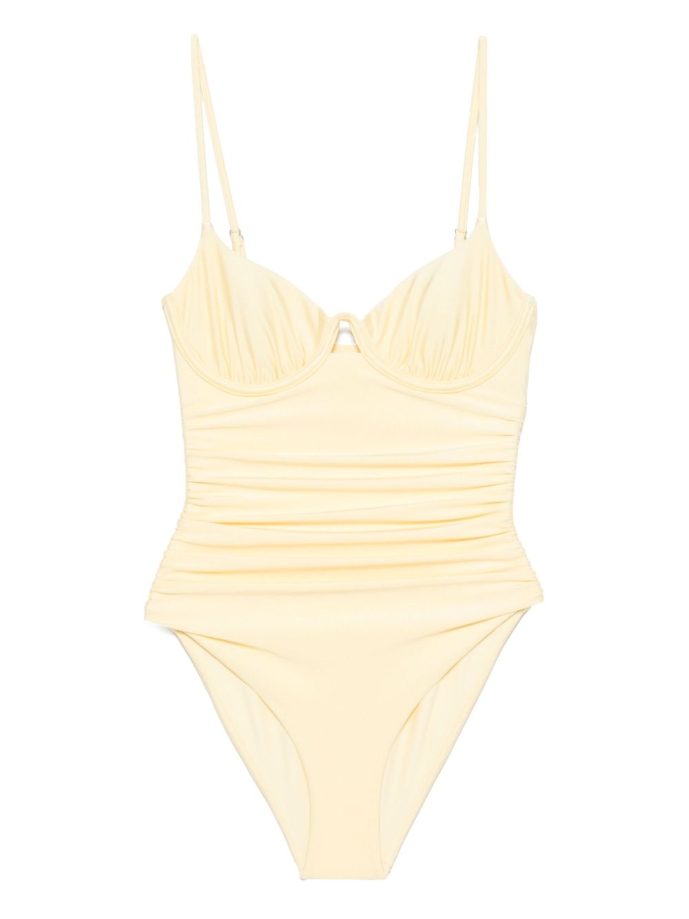 Laine swimsuit Highlights - Butter yellow - Adjustable spaghetti straps - Gathered detailing - Moulded cup - Be mindful to try on swimwear over your own garments. Imported Composition Lining: Polyamide 80%, Spandex/Elastane 20% Outer: Nylon 80%, Spandex/Elastane 20%
