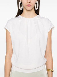 Lamara top Highlights - White - Rear button fastening - Crew neck - Pleat detailing - Sleeveless Imported Composition Merino 100% SIZE & FIT Model measurements Height 5 ft 10 in(1.78 m) Bust/Chest 33.85 in(86 cm) Hips 36.61 in(93 cm) Waist 26.77 in(68 cm) FittingInformation Designed for a relaxed fit, this piece allows for comfort and movement when worn Made with a midweight knit, this piece offers some stretch