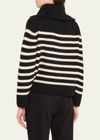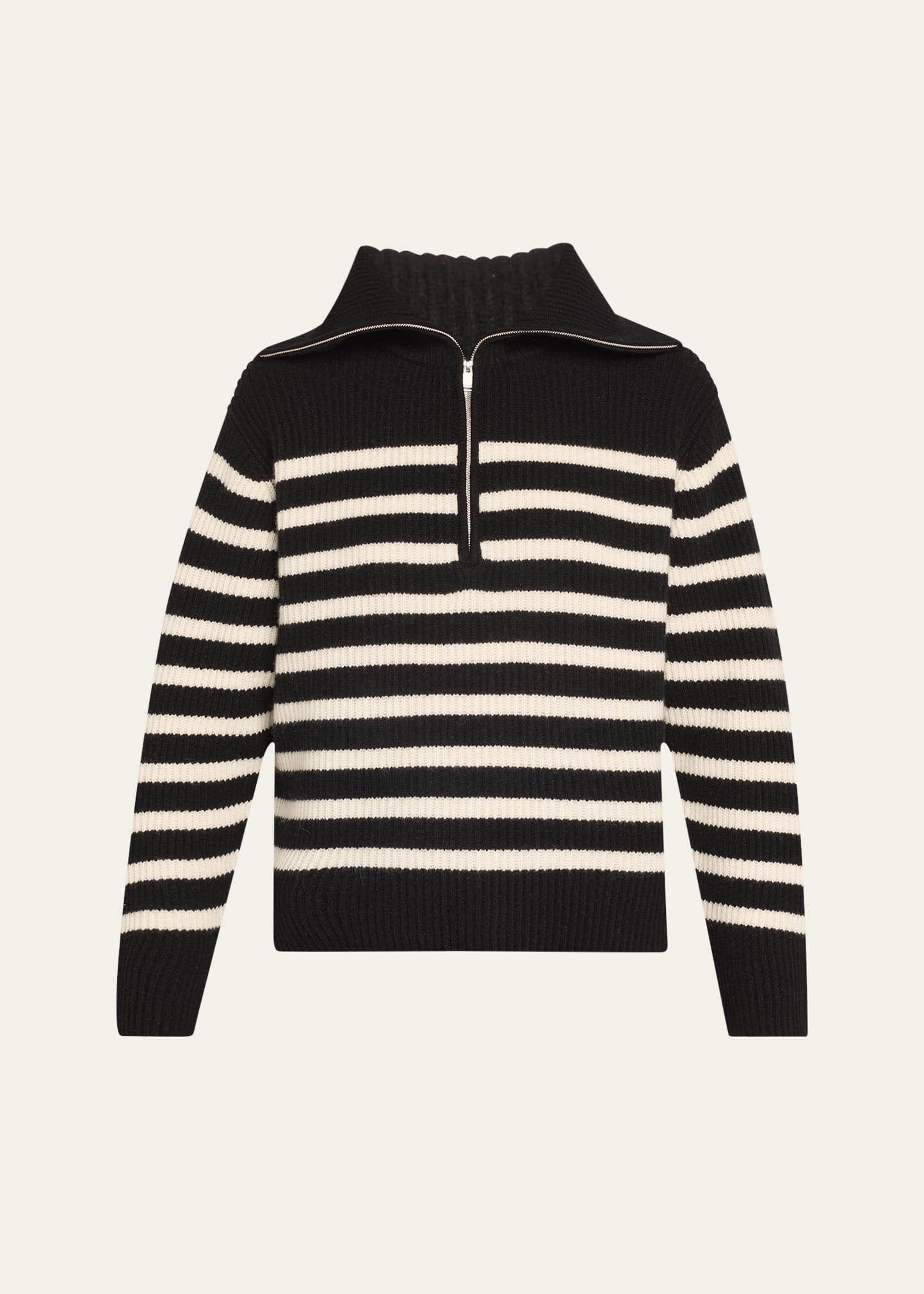 SIMKHAI "Landry" striped cashmere sweater featuring a half zip-front Funnel neckline Long sleeves Easy fit Hem falls to the hip Pullover style Cashmere Dry clean Imported Online Inquiries: BGS21_T69ER| Store Inquiries: #4936815
