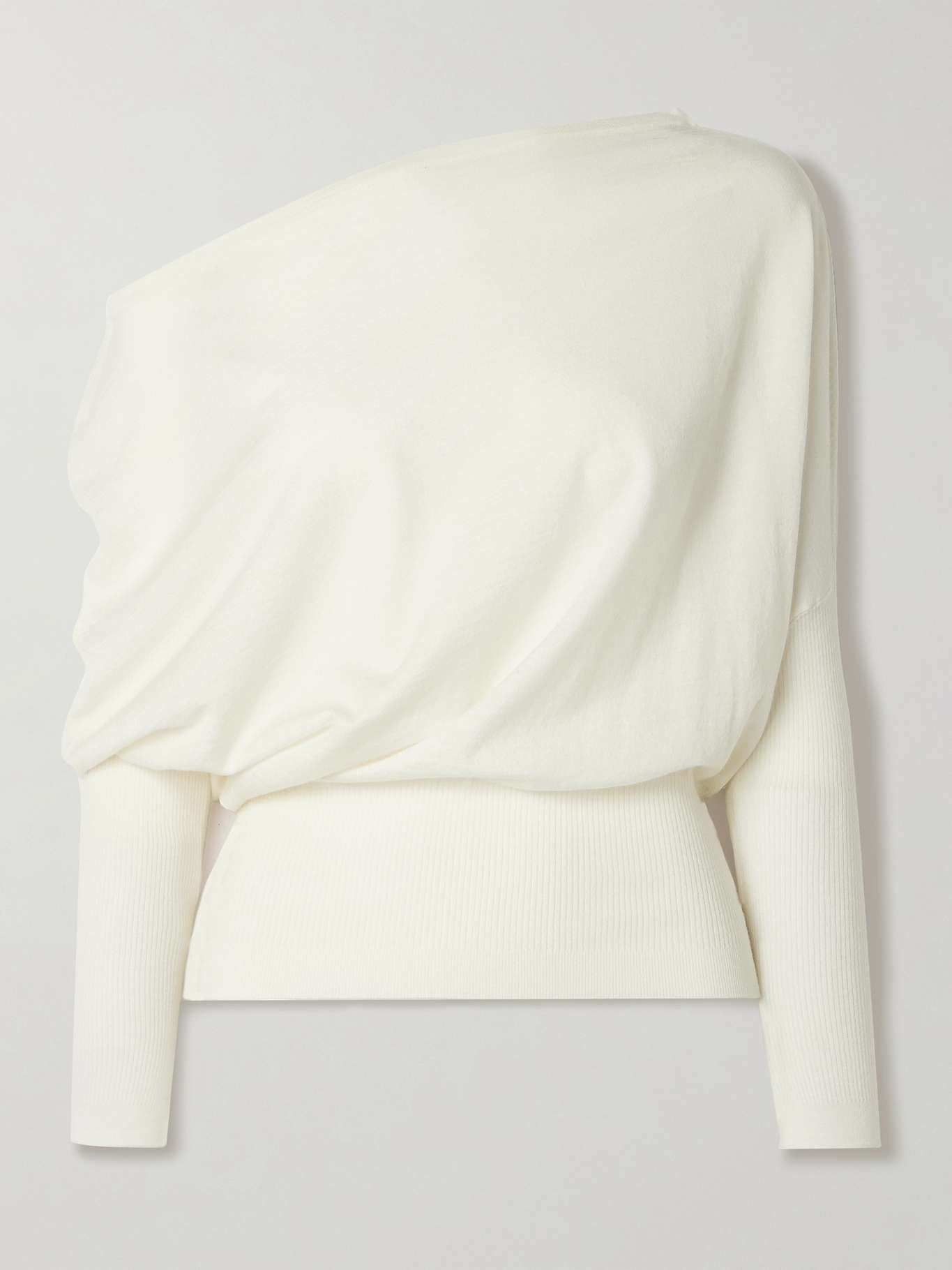Lavina asymmetric off-the-shoulder ribbed wool-blend sweater