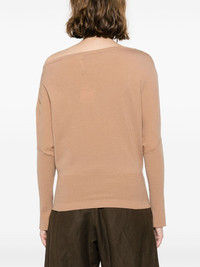 off-shoulder wool-blend jumper Highlights - Camel brown - Wool blend - Knitted construction - Draped design - Off-shoulder - Long sleeves - Ribbed cuffs and hem Imported Composition Wool 62%, TENCEL™ 20%, Polyester 18% SIZE & FIT Model measurements Height 5 ft 10 in(1.79 m) Bust/Chest 32.67 in(83 cm) Hips 34.25 in(87 cm) Waist 24.4 in(62 cm) FittingInformation Designed for a relaxed fit, this piece allows for comfort and movement when worn The ribbed hem offers a close, comfortable fit Made with a midweight knit, this piece offers some stretch This piece fits true to size – take your usual size Washing instructions Dry Clean Only