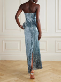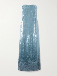 SIMKHAI's 'Leilani' gown is saturated in shimmering sequins in pretty 'Azure Sky' blue. It has an elegant column cut that skims your figure beautifully. Wear yours with metallic accessories. Size & Fit - Fits true to size, however those who are between sizes should take the smaller size - Designed for a close fit - Internal bust support - Mid-weight, heavily embellished, non-stretchy fabric - Model is 177cm/ 5'10" and is wearing a US 2 Model measurements: - Bust: 80cm/ 31.5" - Waist: 60cm/ 23.5" - Hip: 89cm/ 35" Details & Care - Blue sequined crepe - Concealed hook and zip fastening at back - 96% nylon, 4% polyester; lining: 96% polyester, 4% elastane - Dry clean - Designer color: Azure Sky