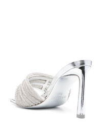 105mm Lena crystal-embellished sandals Highlights - Silver-tone - Calf leather - Metallic effect - Crystal embellishment - Square open toe - Slip-on style - Branded leather insole - 105mm high sculpted heel - Leather sole Imported Composition Outer: Polyurethane 100% Lining: Calf Leather 100% Sole: Calf Leather 100% SIZE & FIT Measurement HEEL 4.13 in(10.5 cm)
