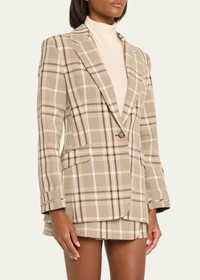 SIMKHAI "Lillie" plaid blazer Notch lapels Single-breasted front Long sleeves with rolled cuffs Hip flap pockets Tailored fit Button-front Polyester/viscose/elastane Dry clean Imported Model is 5'10"/177cm. Online Inquiries: BGS21_T5YLU| Store Inquiries: #4858098