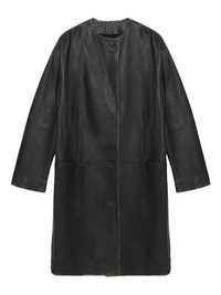 long leather coat Highlights - Black - Side seam pockets - Front button fastening - Round neck Made in Italy Composition Lambskin 100% Washing instructions Specialist Cleaning