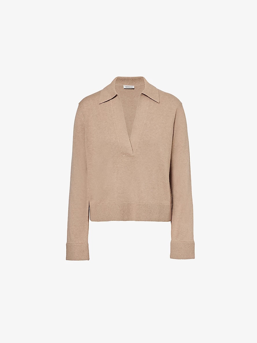PRODUCT DETAILS - Simkhai cotton and cashmere top - 85% cotton, 15% cashmere - Slips on - Regular fit, round neck, bell sleeves, crystal embellishment at sleeves, ribbed knit - Dry clean - True to size - Model is 5ft 10in/1.78m and wears a size small - Lightweight, stretchy Ref: R04395533