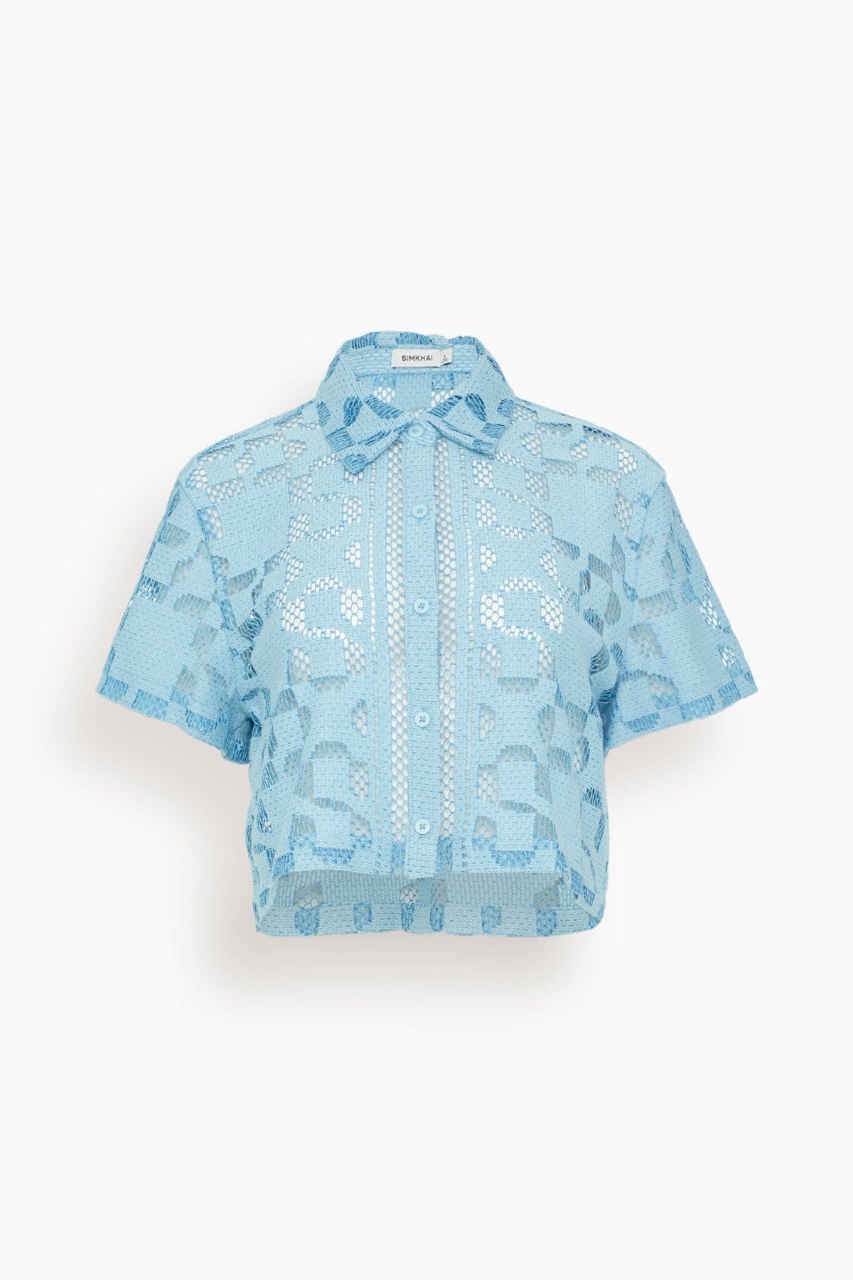The Simkhai Makaia Cropped Short Sleeve Button Down Shirt is a must-have addition to your summer wardrobe. This button down shirt features a boxy silhouette in a cotton-blend jacquard. Wear yours with the matching shorts and sandals. FIT DESCRIPTION MODEL MEASUREMENTS - Fits true to size, take your normal size - Button down shirt - Cropped length - Boxy silhouette - 80% cotton, 20% polyamide - Harriet is wearing a size 1/ XS - Bust: 32" - Waist: 24" - Hips: 30.5" - Height: 5’8.5”