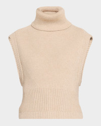 SIMKHAI "Maple" luxurious cashmere sweater vest Rolled turtleneck Cap sleeves Relaxed fit Hem falls to the hip Pullover style Cashmere Dry clean Imported