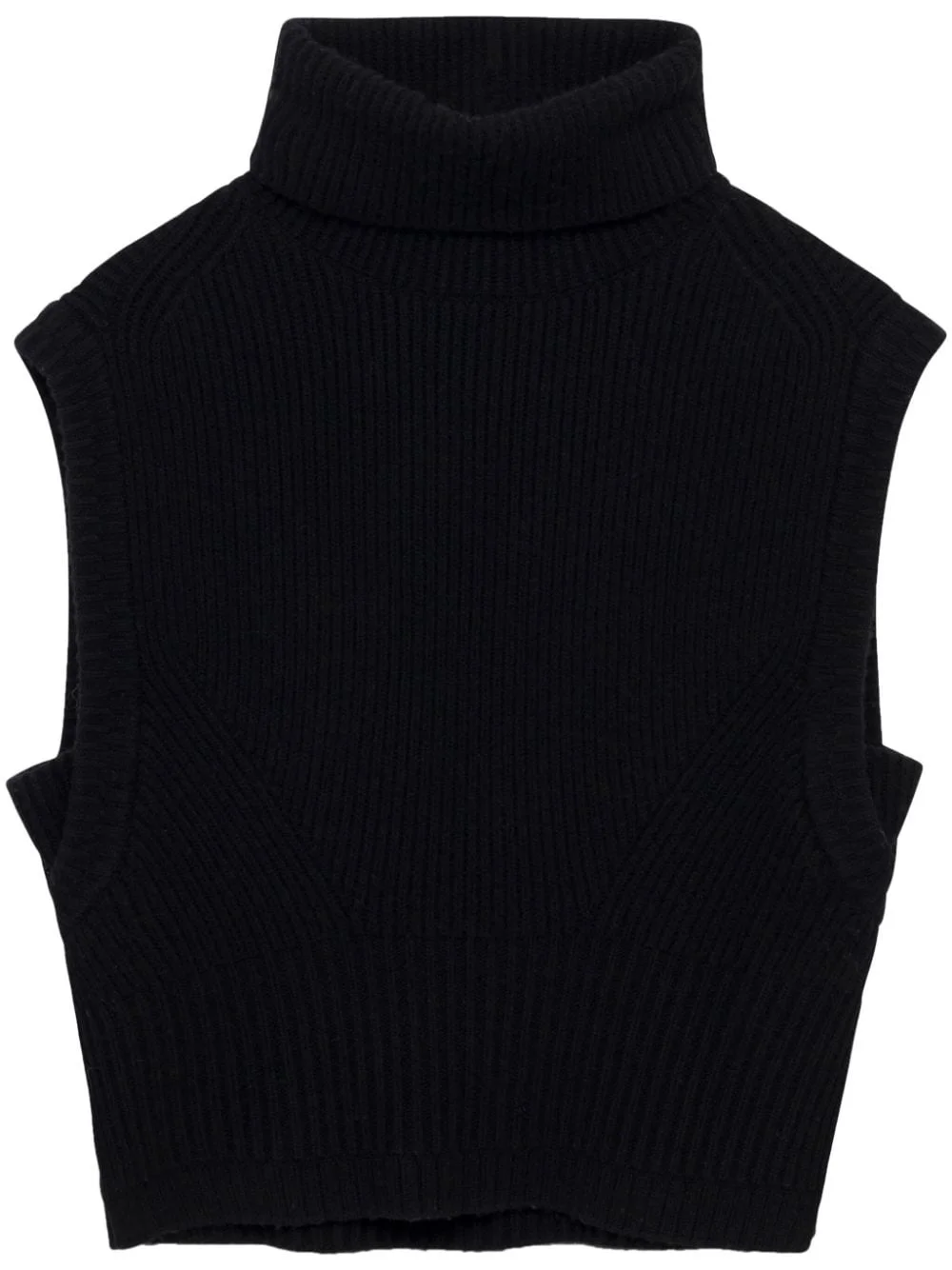 Maple top Highlights - Black - Wool-cashmere blend - Ribbed trim - Roll neck - Sleeveless Imported Composition Wool 84%, Cashmere 9%, Nylon 6%, Spandex/Elastane 1%