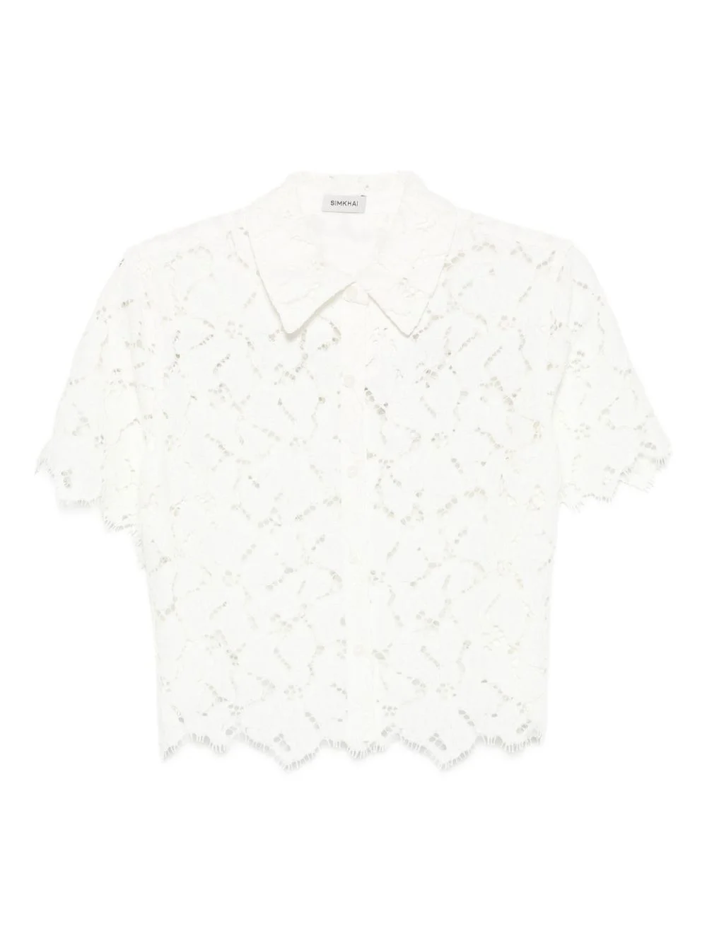 lace scalloped-hem shirt Highlights - Ivory - Short sleeves - Collared neckline - Scalloped hem Imported Composition Recycled Polyester 100% SIZE & FIT Model measurements Height 5 ft 9 in(1.75 m) Bust/Chest 34.64 in(88 cm) Hips 36.61 in(93 cm) Waist 26.37 in(67 cm) Washing instructions Read Manufacturer Guidelines