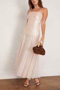 The Simkhai Maxine Bustier Midi Dress will have you ready for a night out. this dress features a beautiful sequined bodice with a flowing tulle skirt. Wear yours with heels and a clutch. FIT DESCRIPTION MODEL MEASUREMENTS - Fits true to size, take your normal size - Midi length - Mixed material - Sequined bodice - Tulle skirt - Adjustable straps - Concealed back zipper - 100% polyester - Allie is wearing a size XS - Bust: 32” - Waist: 25” - Hips: 35” - Height: 5’9”