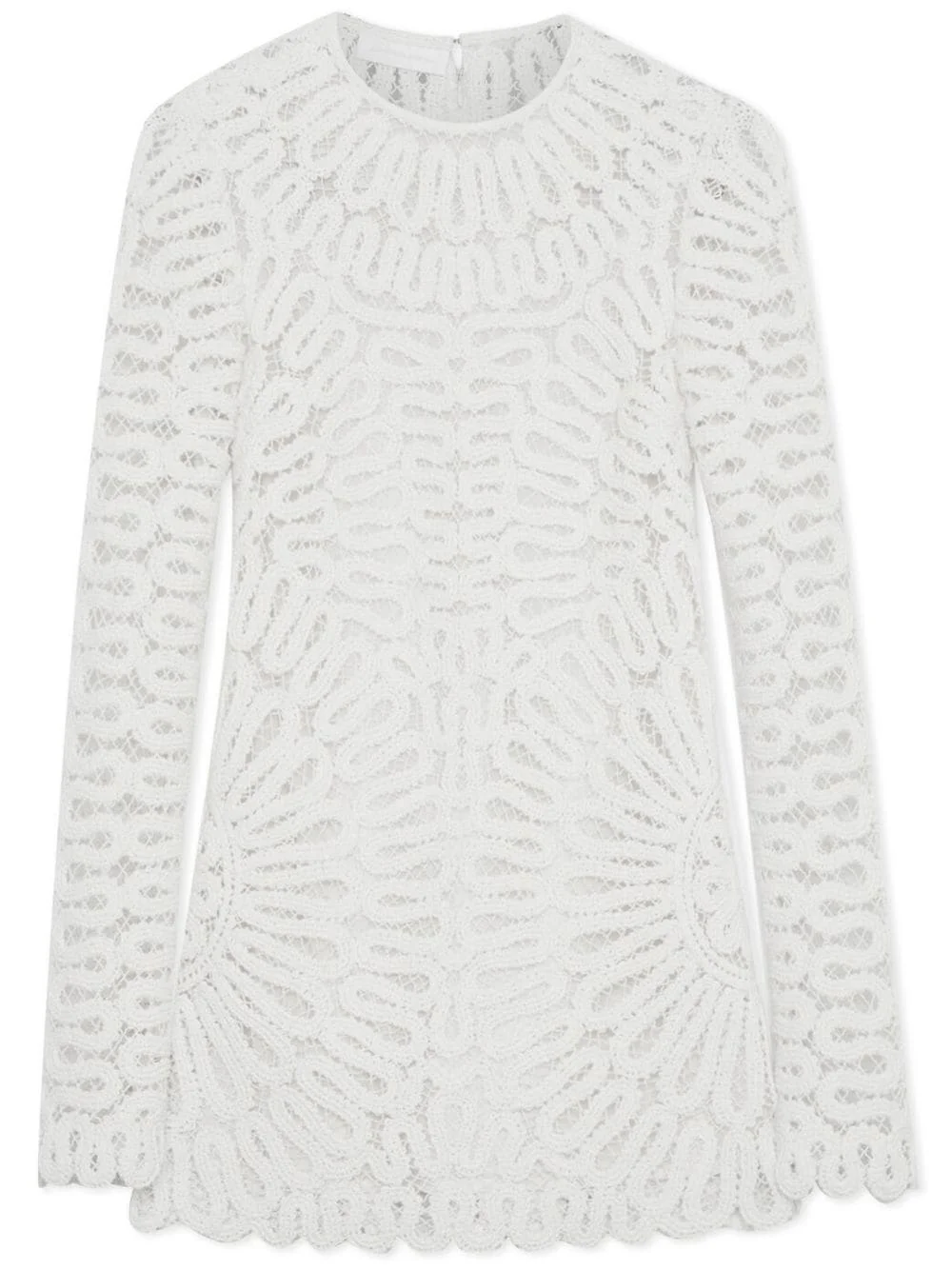 Mccall cage crochet mini dress white cotton cage crochet round neck concealed front zip fastening long sleeves above-knee length Made in United States Composition Cotton 100% SIZE & FIT Measurement SLEEVE LENGTH 25.51 in(64.8 cm) HIPS 30.98 in(78.7 cm) LENGTH 30.98 in(78.7 cm) WAIST 27.99 in(71.1 cm) BUST 30.98 in(78.7 cm)