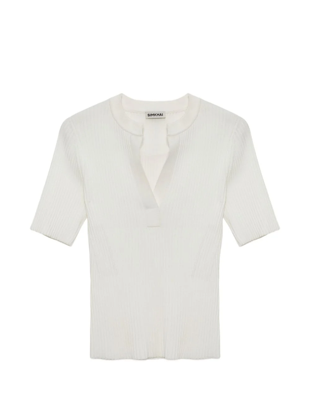 Miley V-neck ribbed-knit top Highlights - Ivory - Ribbed knit - V-neck - Short sleeves Imported Composition Outer: Rayon 83% Polyester 17% Washing instructions Dry Clean Only