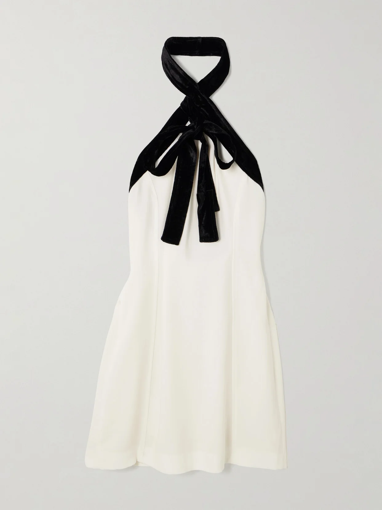 Jolie Bow-detailed Velvet-trimmed Crepe Mini Dress