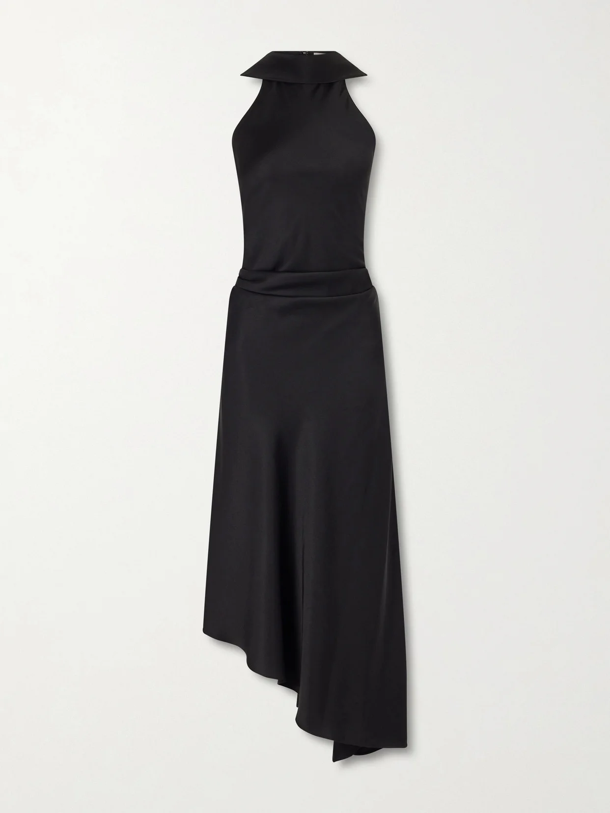 Monica Asymmetric Tie-detailed Satin Halterneck Midi Dress