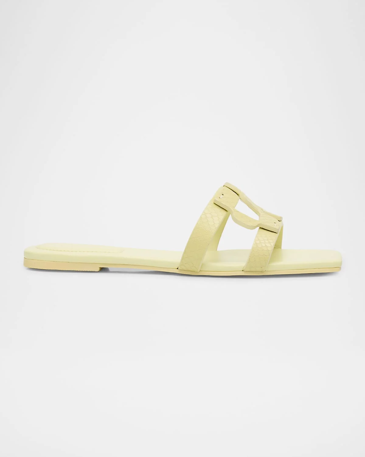 Made in snakeembossed calf leather, these sandals by SIMKHAI feature the brand's iconic "S" motif Flat heel Squared open toe Easy slide style Sheep leather lining Made in Italy