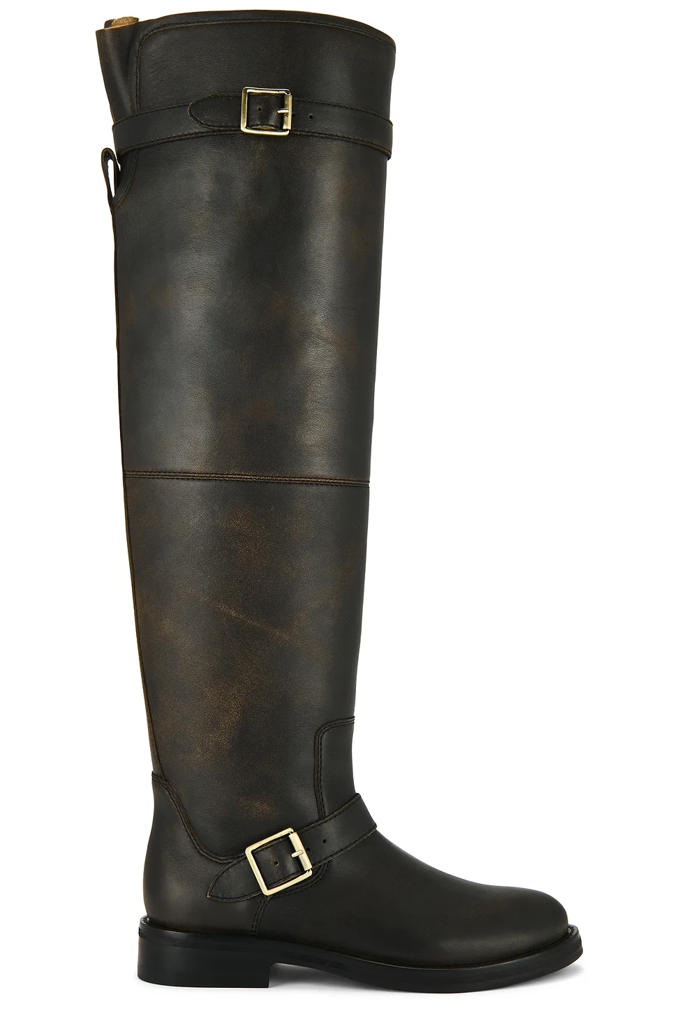 - Smooth calf leather upper with leather outsole - Pull-on style with back tab - Sheep leather lining - Round toe silhouette - Approx 40mm/ 1.5 inch heel Approx 368mm/ 14.5 inch shaft Shaft measures approx 11.77" in circumference - Revolve Style No. JSKI-WZ82 - Manufacturer Style No. 525-S004-LEA
