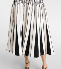 In true Simkhai style, the Oaklen midi dress promises instant polish. The design is made from a striped knit fabric with a fitted bodice and a slightly flared skirt. Product Details - Material: 64% rayon, 21% nylon, 14% polyester, 1% elastane - Care instructions: dry clean - Made in China - Designer color name: Black Multi - Item color: black, white - Collar: crewneck - Item number: P01125145 Size & Fit - True to size - Cinched waist - Slightly stretchy fabric - The model seen in the picture is 178cm-5'10" and wearing a size XS