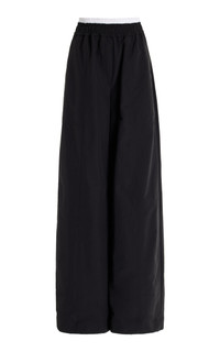 Olly Double-Waist Cotton Faille Wide-Leg Pants black