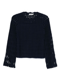 cut-out ribbed sweater Highlights - Midnight blue - Ribbed knit - Long sleeves - Round neck Imported Composition Rayon 83%, Polyester 17% SIZE & FIT Model measurements Height 5 ft 9 in(1.75 m) Bust/Chest 34.64 in(88 cm) Hips 36.61 in(93 cm) Waist 26.37 in(67 cm) Washing instructions Dry Clean Only