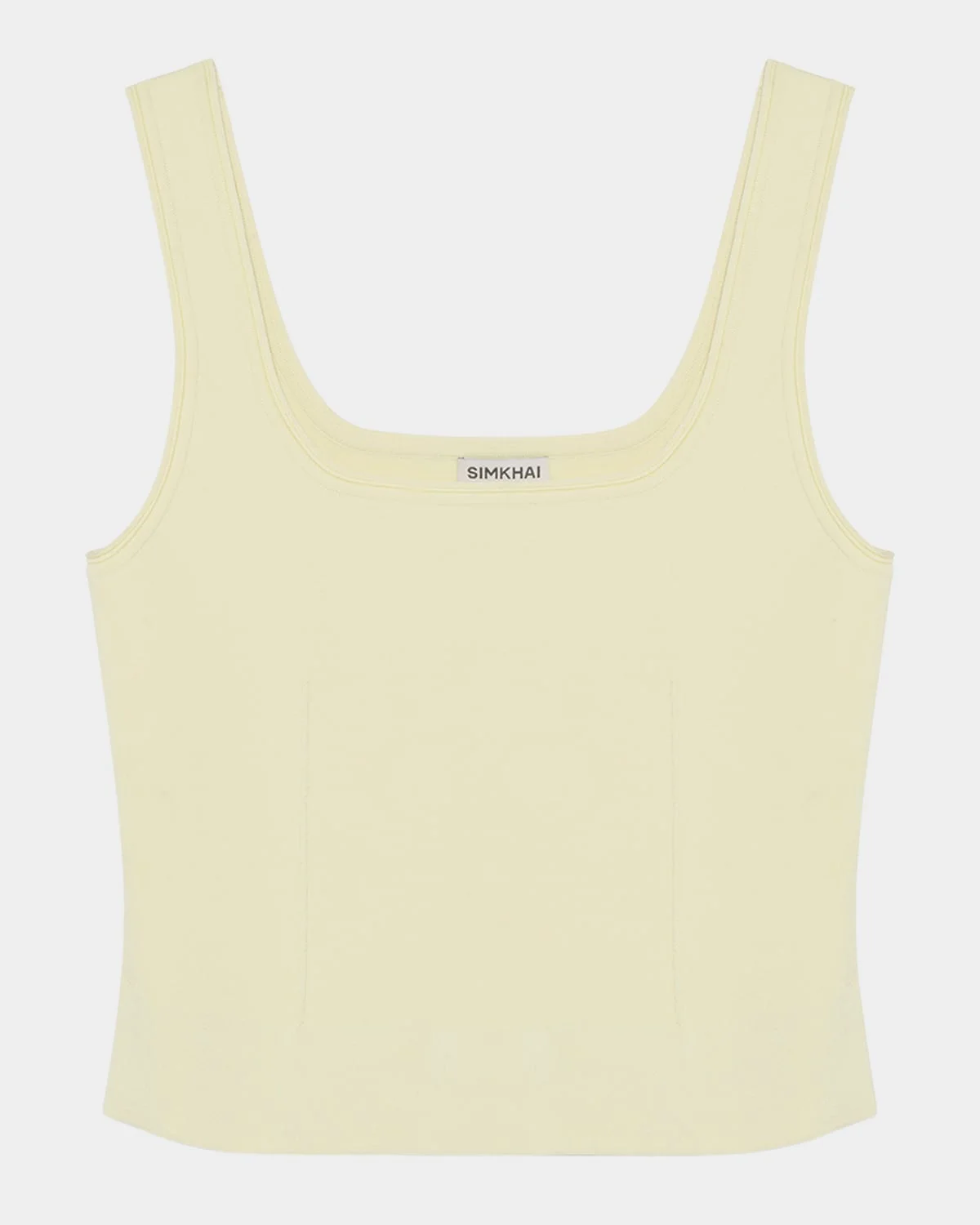 - SIMKHAI "Ramaina" compact knit tank top - Square neckline - Sleeveless - Fitted - Hip length - Pullover style - Rayon/cellulose acetate - Imported