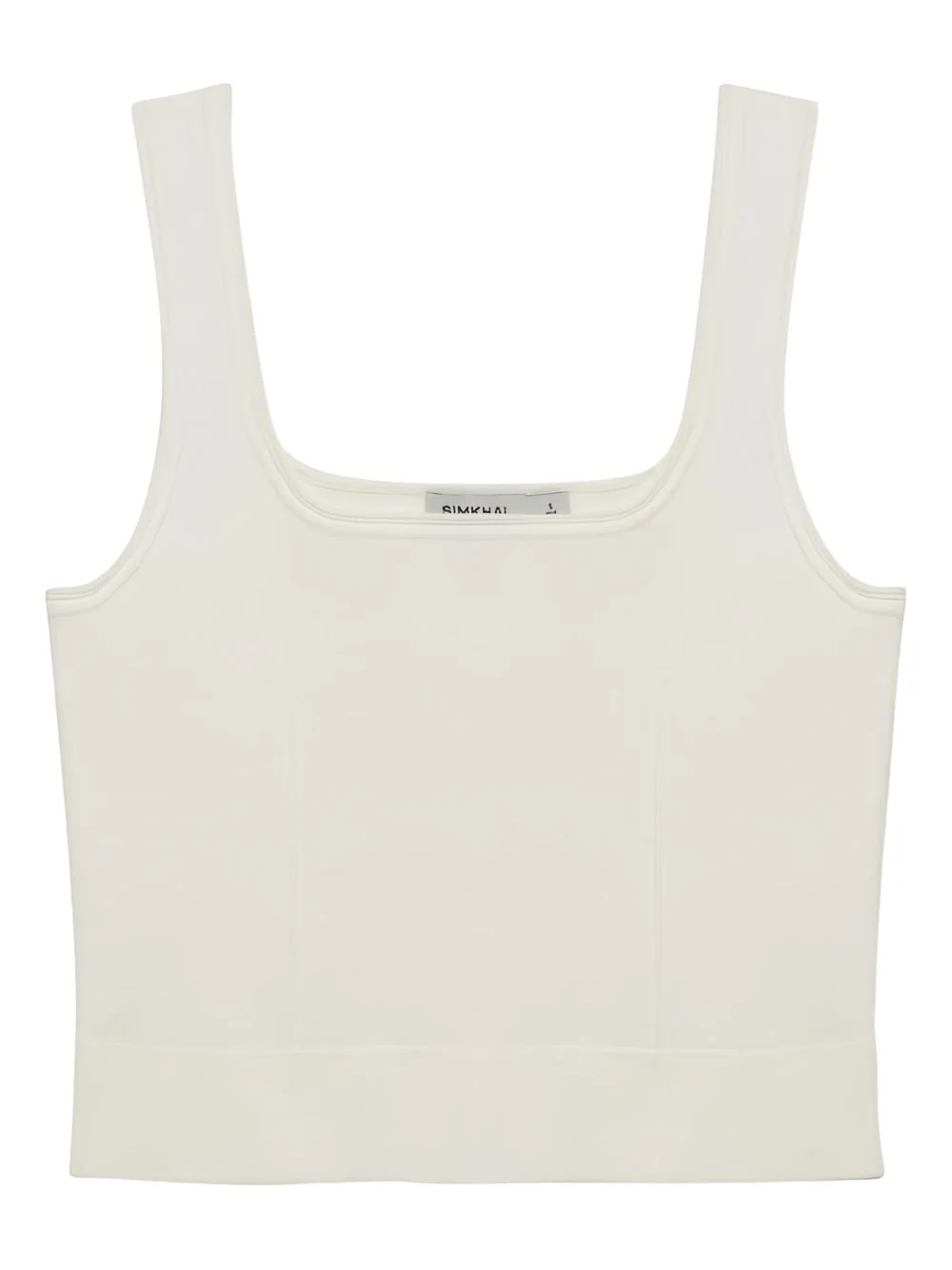 Ramaina square-neck ribbed tank top Highlights - Ivory - Square neckline - Ribbed texture - Sleeveless - Straight hem Imported Composition Rayon 65%, Nylon 19%, Polyester 14%, Spandex/Elastane 2% Washing instructions Read Manufacturer Guidelines