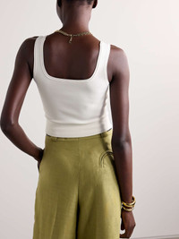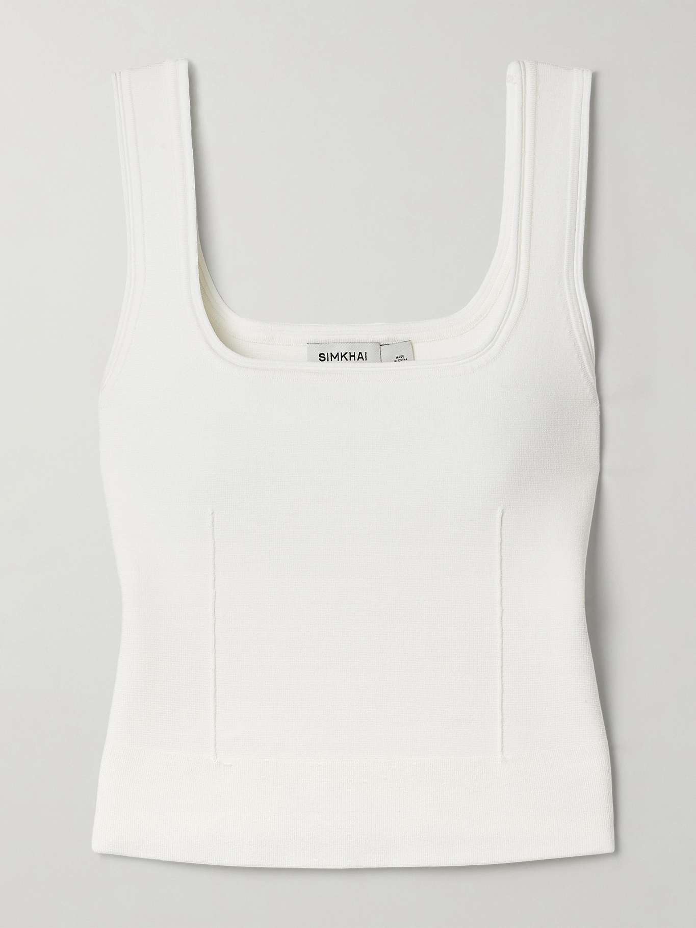 EDITORS'NOTES The simplicity of SIMKHAI's 'Ramina' tank means you can wear it with so many outfits. It's knitted for a close fit and has vertical seams along the bodice. Show off the elegant square neckline with a minimalist pendant. SIZE & FIT Model measurements: - Fits true to size, take your normal size - Designed for a close fit - Lightweight, stretchy fabric - Model is 177cm/ 5'10" and is wearing a size Small - Bust: 80.1cm/ 31.5" - Waist: 64.8cm/ 25.5" - Hip: 90.5cm/ 35" DETAILS & CARE - Ivory stretch-knit - Slips on - 65% rayon, 19% nylon, 14% polyester, 2% spandex - Dry clean