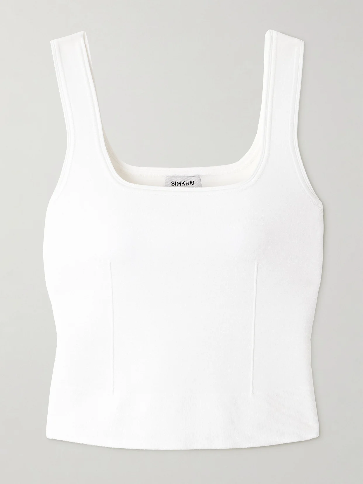 The perfect white tank comes down to shape and fabric - choosing thoughtfully makes all the difference. This version from SIMKHAI is made from stretch-knit for a smoothing, close fit and has wide straps and raised seams.