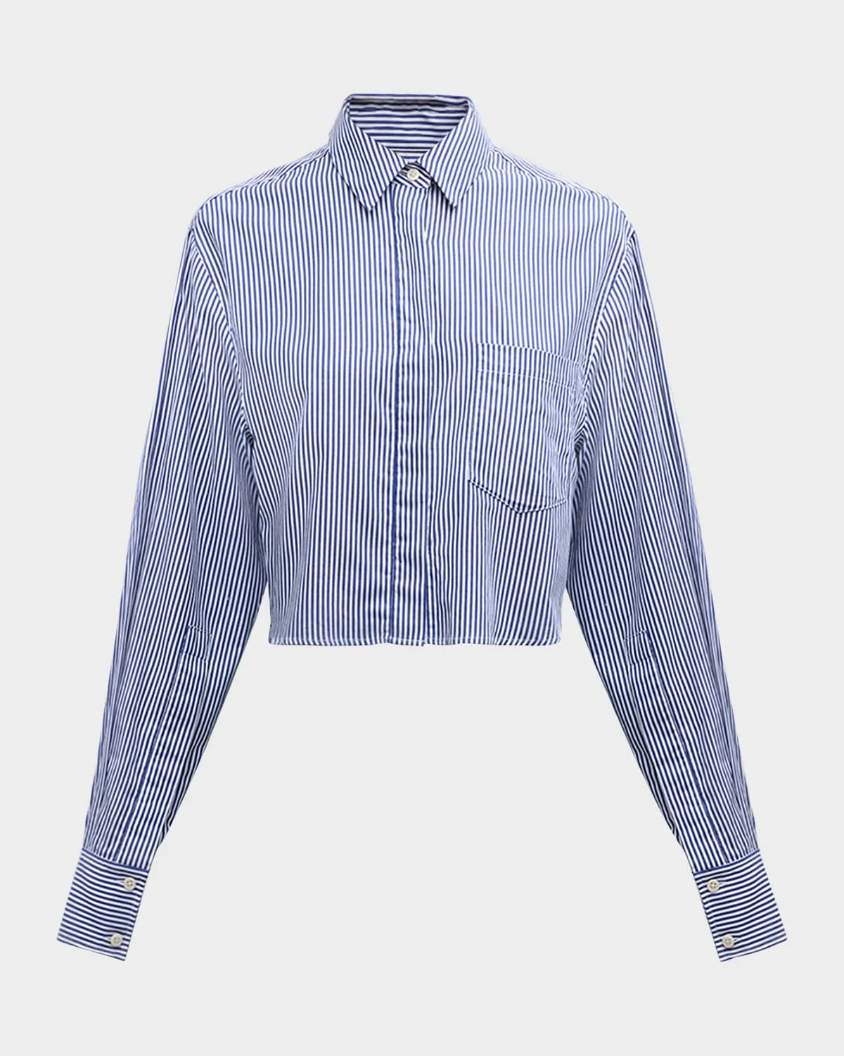 Renata Cropped Cotton Stripe Button-Front Shirt