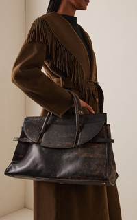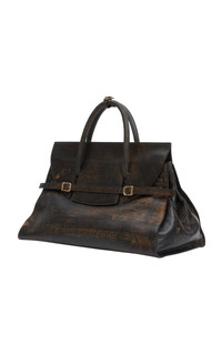 PRODUCT DETAILS - Top handle bag silhouette, distressed leather body, buckle detail, lined - Flap closure - Composition: body: 100% calf leather, lining: 100% polyester - Imported