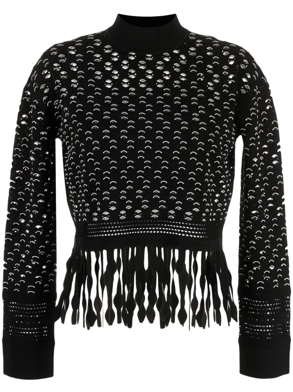 Roman fringed jumper Highlights - Black - Cut-out detailing - High neck - Long sleeves - Fringe detailing Imported Composition Rayon 83%, Polyester 15%, Spandex/Elastane 1%, Nylon 1% SIZE & FIT Model measurements Height 5 ft 9 in(1.75 m) Bust/Chest 31.88 in(81 cm) Hips 35.03 in(89 cm) Waist 23.22 in(59 cm) FittingInformation Designed to be unstructured, offering a loose fit throughout Made with a midweight knit, this piece offers some stretch This piece fits true to size – take your usual size Washing instructions Hand Wash