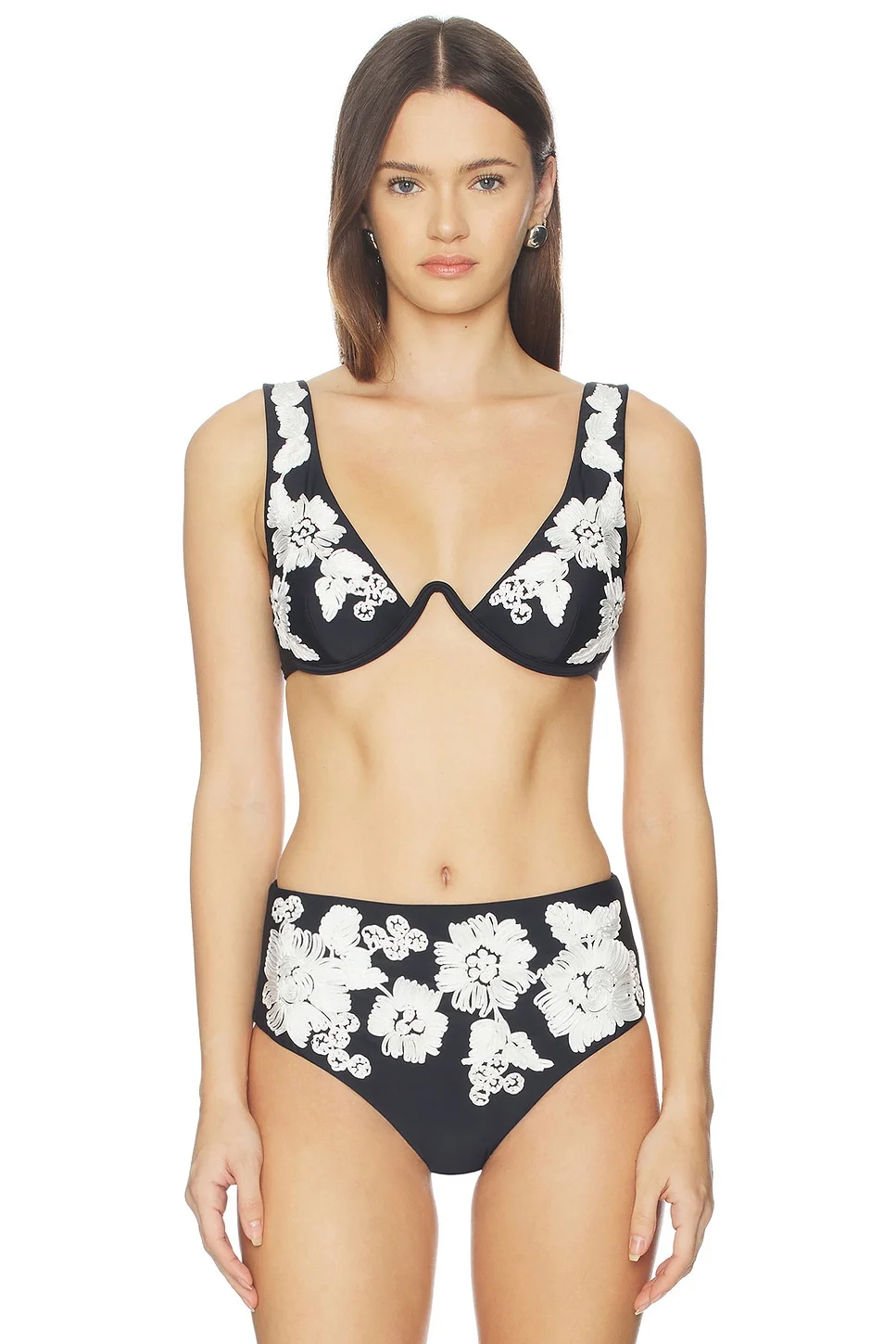 - Self: 80% nylon 20% spandex Lining: 80% polyamide 20% spandex - Made in China - Hand wash cold - Back hook closure - Padded cups - Swimwear fabric - Underwire styling - Item not sold as a set - Revolve Style No. JSKI-WX242 - Manufacturer Style No. 126-9090-SW