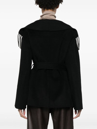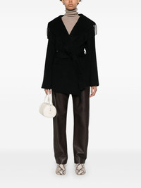 Rowen jacket Highlights - Black - Wool blend - Brushed effect - Open front - Shawl lapels - Fringed edge - Long sleeves - Belted waist - Two front welt pockets - Unlined - Straight hem Imported Composition Lining: Polyester 100% Outer: Wool 50%, Polyester 50% SIZE & FIT Model measurements Height 5 ft 10 in(1.77 m) Bust/Chest 28.74 in(73 cm) Hips 35.03 in(89 cm) Waist 23.62 in(60 cm) FittingInformation Designed to be unstructured, offering a loose fit throughout The tie fastening gives an adaptable and personalised fit Made from a midweight non-stretch fabric