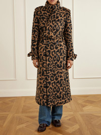 Simkhai's leopard-print 'Rumi' coat will turn any outfit from simple to statement-making. Make from brushed-felt with touches of wool, it has all the hallmarks of a classic trench, including epaulettes, a storm flap and waist-cinching belt. The smooth lining makes for easy layering.
