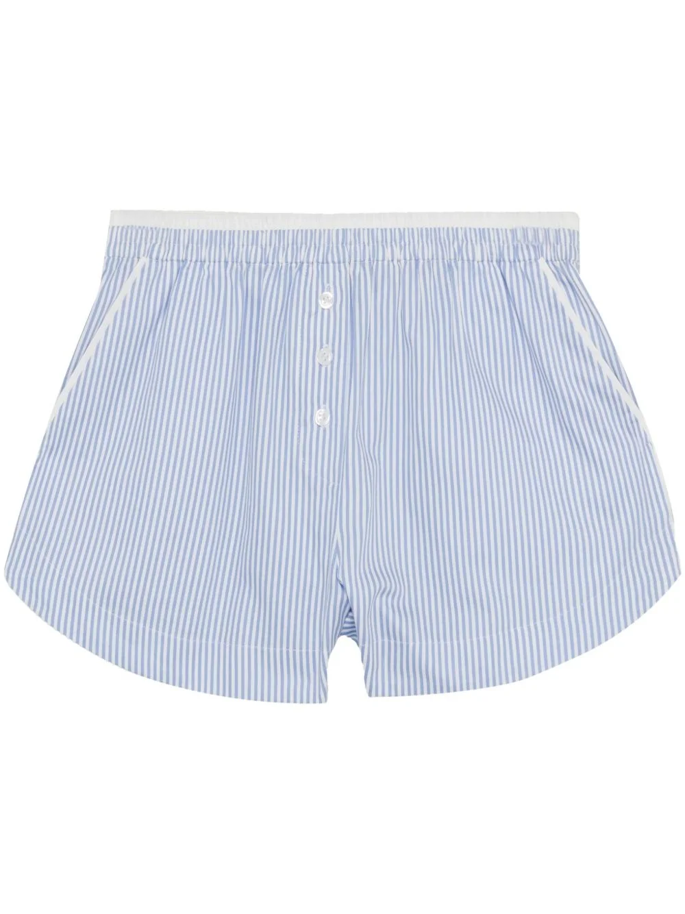 Sarah cotton shorts Highlights - Light blue - Elasticated waistband - Two side slash pockets - Decorative button detailing - Vertical stripe print Imported Composition Cotton 100%