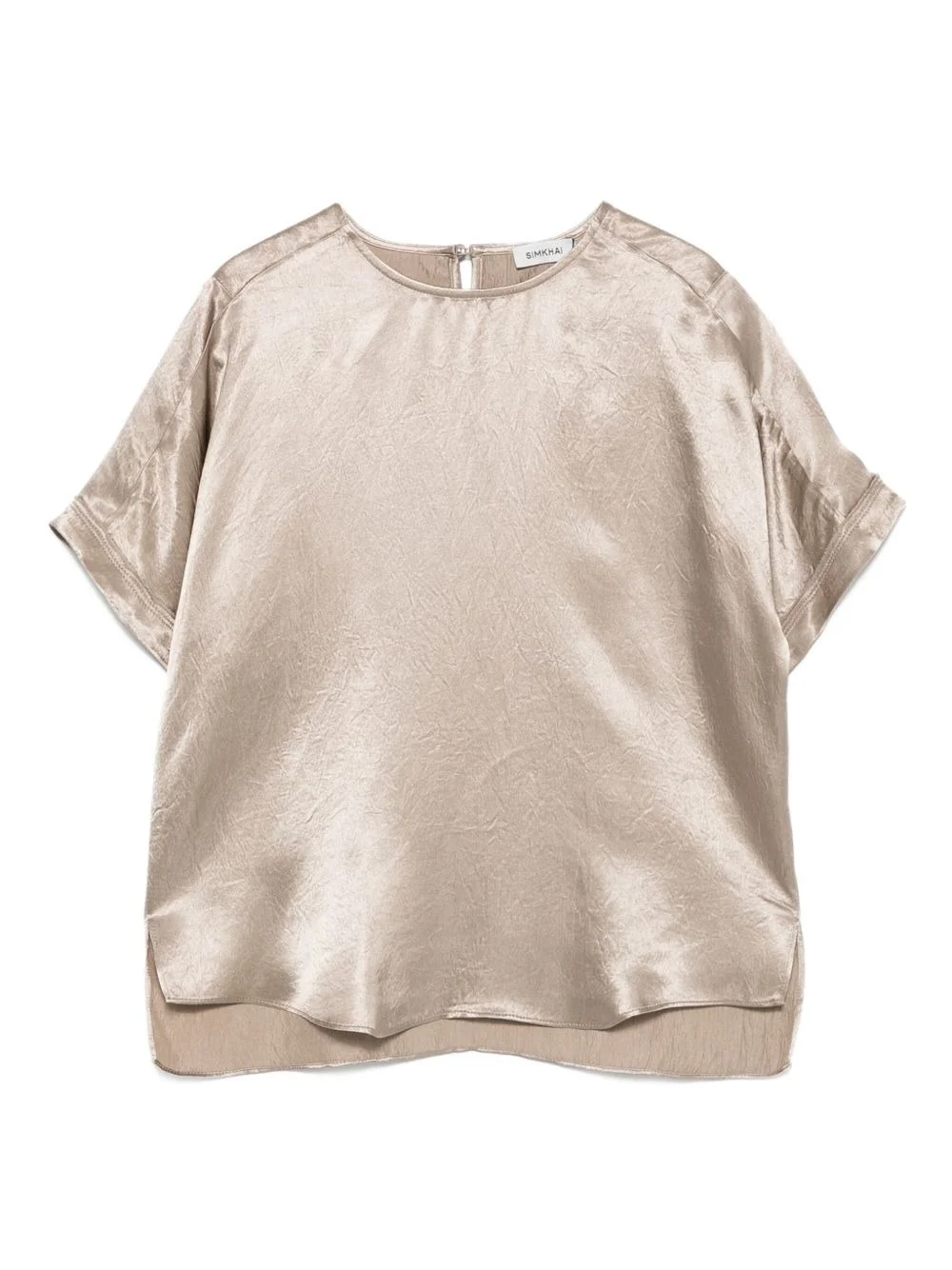 satin short-sleeve blouse Highlights - Olive green - Satin finish - Short sleeves - Round neck - Straight hem Imported Composition Acetate 100% SIZE & FIT Model measurements Height 5 ft 10 in(1.79 m) Bust/Chest 31.88 in(81 cm) Hips 35.43 in(90 cm) Waist 23.62 in(60 cm) Washing instructions Hand Wash