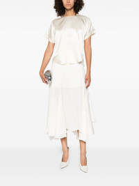 satin short-sleeved blouse Highlights - Light beige - Satin texture - Round neck - Short sleeves - Straight hemline Imported Composition Acetate 100% SIZE & FIT Model measurements Height 5 ft 10 in(1.79 m) Bust/Chest 31.88 in(81 cm) Hips 35.43 in(90 cm) Waist 23.62 in(60 cm) Washing instructions Hand Wash