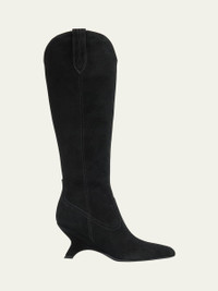 SIMKHAI "Shadow" suede western knee boots 3.00 in / 75 mm comma heel Pointed toe Zip closure for easy on/off Pull tabs at the collar Leather outsole Imported Online Inquiries: BGS21_X6XLC| Store Inquiries: #5040200